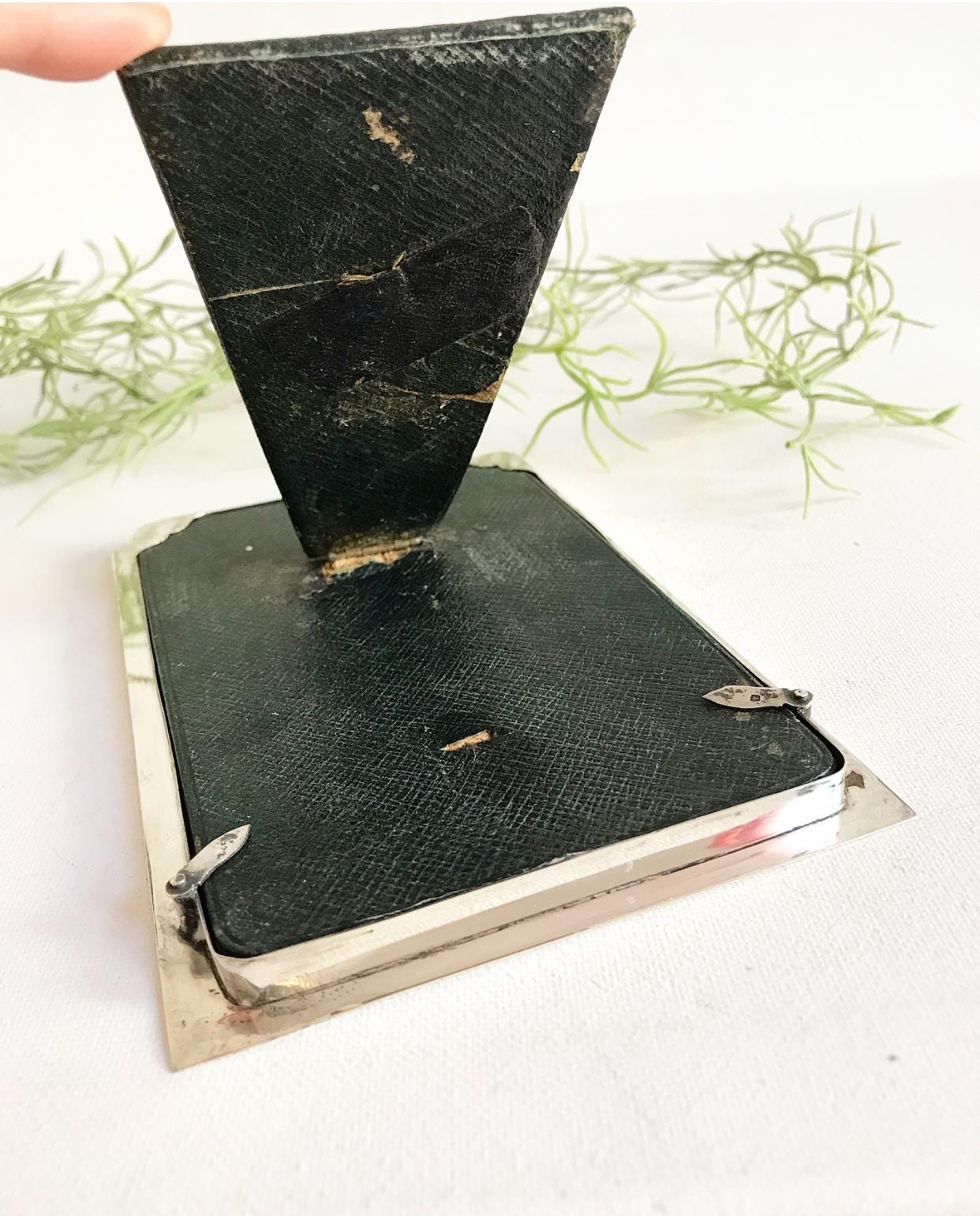Includes a leather stand and backing.