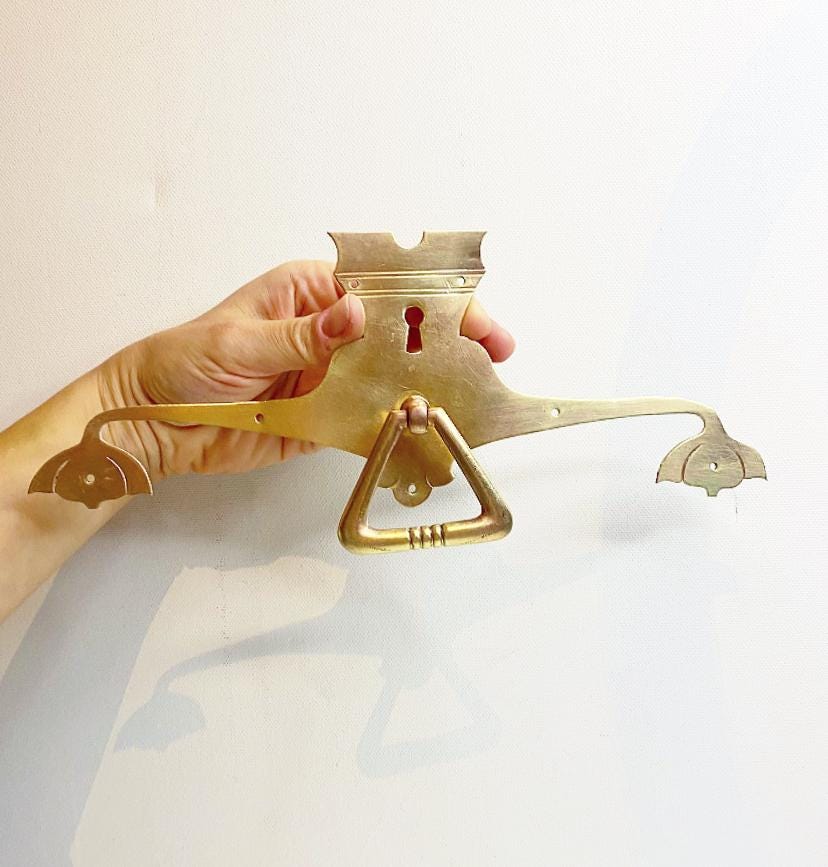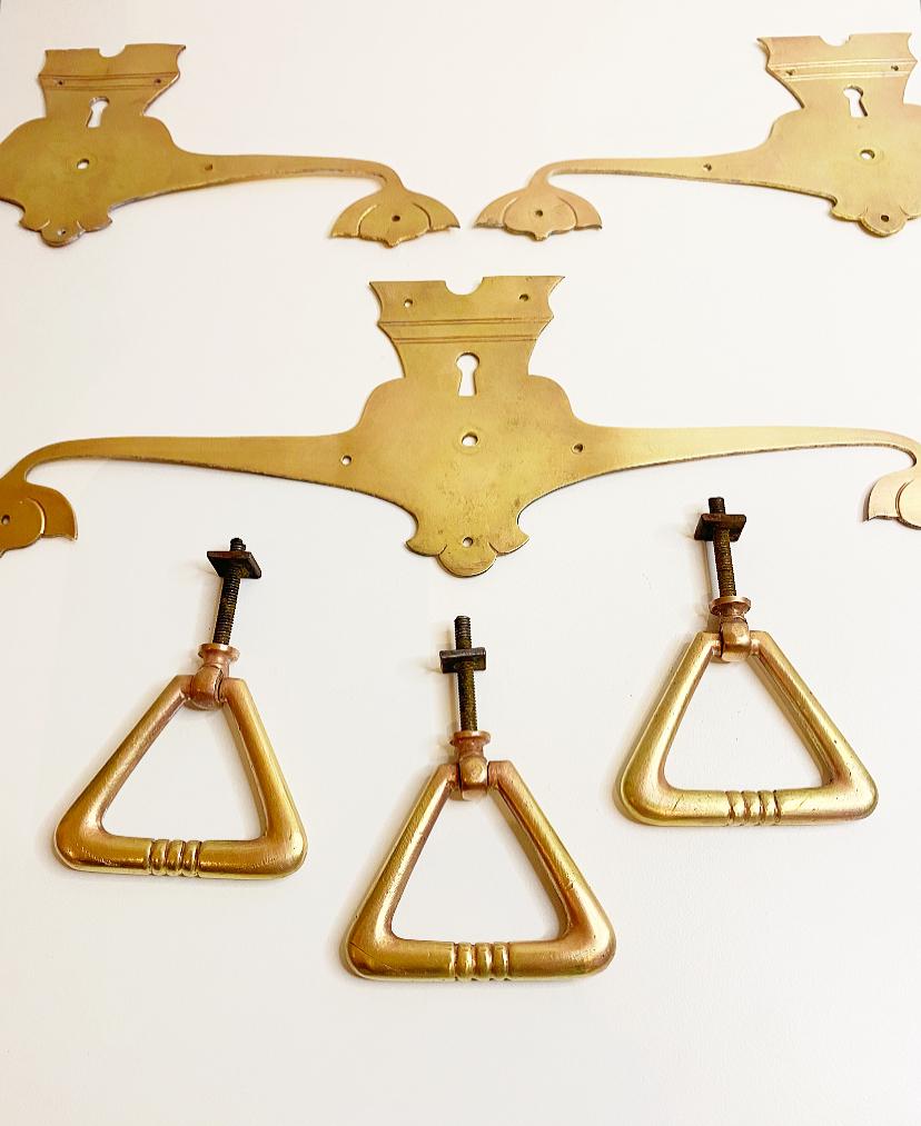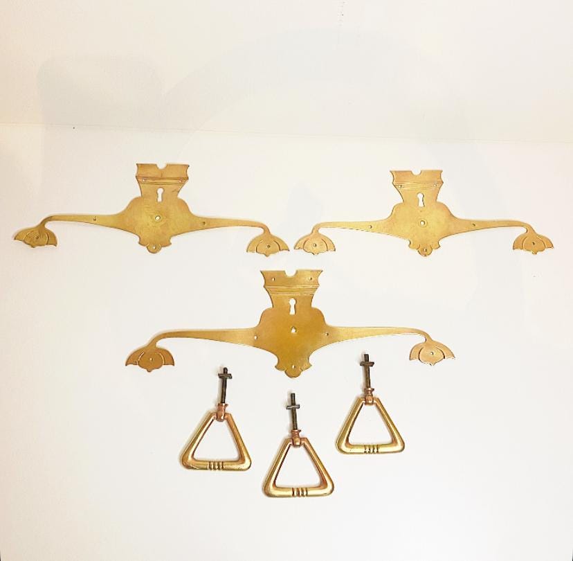 Classic, generously sized keyhole covers with brass handles, ideal for restoring antique furniture.