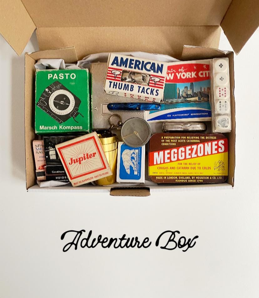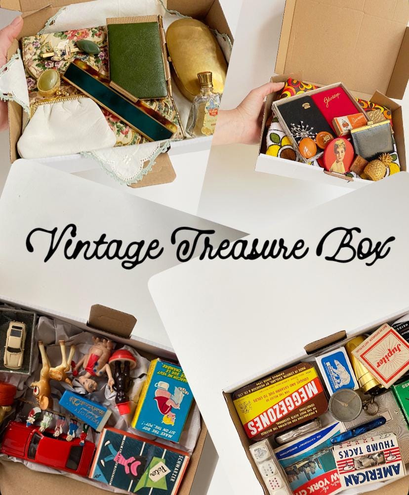 Here I've put together wonderful Treasure Boxes filled with interesting vintage and antique items, all packed into one box.