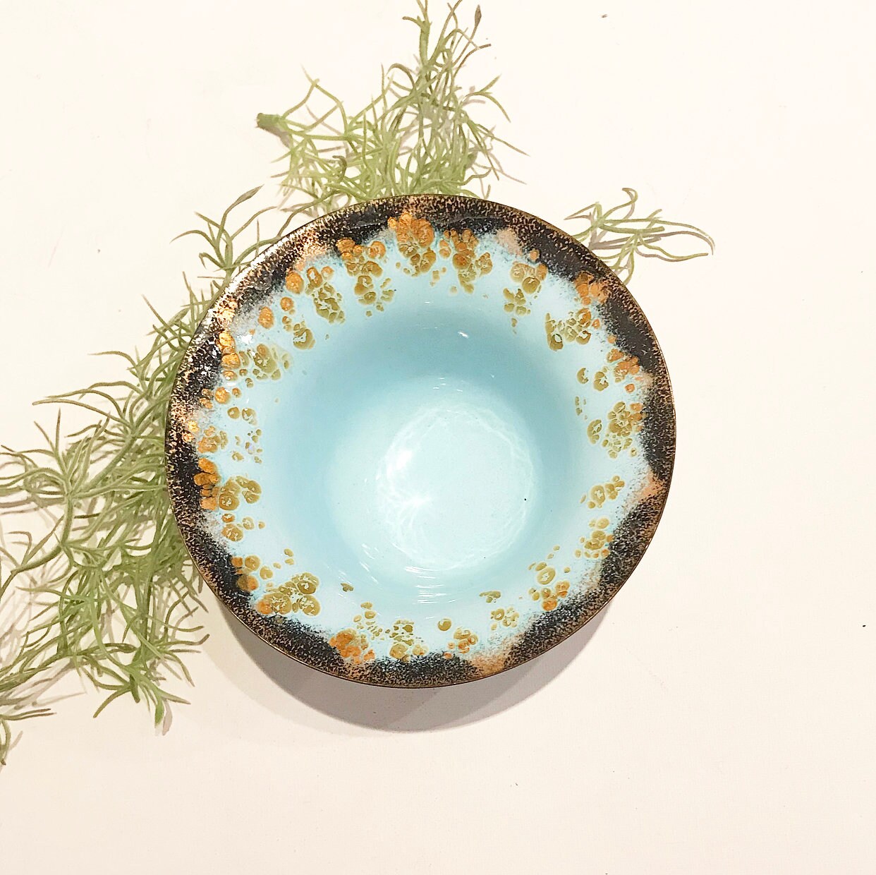 Cool vintage copper bowl Creatively enamelled, in a great design.